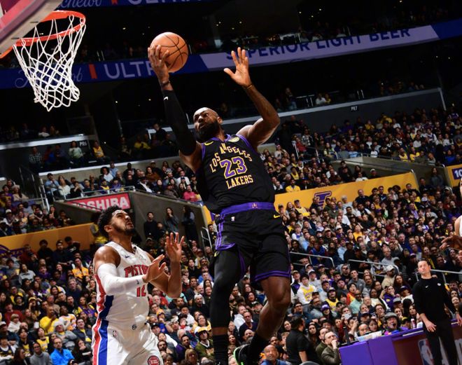 次节比赛,活塞上来连续拿分,将分差拉开到两位数,打出一波8-0攻势,詹姆斯三分命中止血,东契奇跳投命中,詹姆斯三分再进,可活塞进攻状态依然出色,还是能够不断拿分。邓罗突破打成2+1,湖人连续冲击拿分,萨瑟突破打进,奥萨尔反击打进,取得60-49领先。海斯暴扣得手,杜伦吃到一级恶意犯规,萨瑟三分命中,康宁汉姆突破打进,湖人连续得分可就是无法限制对手得分,好在最后詹姆斯三分命中,半场打完65-70活塞。
