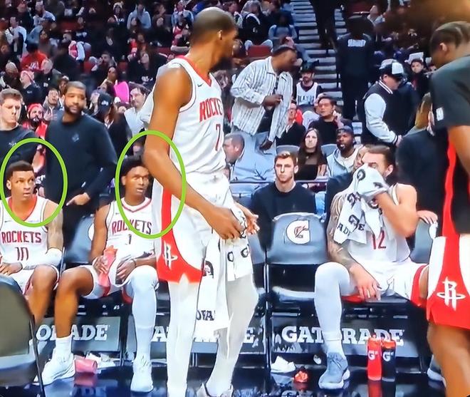 火箭核心杜兰特非常失望,被彻底搞破防了。在小贾巴里·史密斯对西索科三分犯规,乌度卡提出挑战的间隙,杜兰特坐在板凳席难以忍受心中的郁闷,愤怒地将水瓶狠狠摔在地上,然后站了起来。替补席上坐着的小贾巴里·史密斯和阿门·汤普森目瞪口呆。